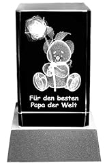 Kaltner Präsente Stimmungslicht - Ein ganz besonderes Geschenk: LED Kerze/Kristall Glasblock / 3D-Laser-Gravur Teddy Rose/Für den besten Papa der Welt