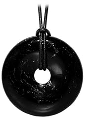 Kaltner Präsente Geschenkidee - Lederkette für Damen und Herren mit Donut Anhänger aus dem Edelstein Schörl Schwarzer Turmalin (Ø 40 mm)