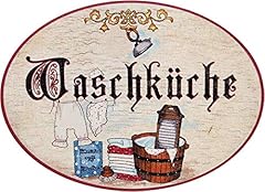 Kaltner Präsente Geschenkidee - Holz Türschild im Antik Design Motiv Wäsche WASCHKÜCHE (Ø 18 cm)