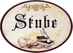 Kaltner Präsente Geschenkidee - Türschild Schild aus Holz im Antik Design Wohnzimmer Schreibzimmer Büro Schriftzug STUBE (Ø 9 cm)