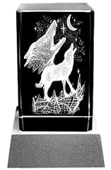 Kaltner Präsente Stimmungslicht LED Kerze/Kristall Glasblock / 3D-Laser-Gravur Heulende WÖLFE bei Mondschein