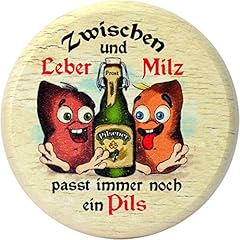 Kaltner Präsente Geschenkidee - Insektenschutz für Gläser und Getränke aus echtem Holz / Bier Wein Bierdeckel Biergläser Weingläser Tassen Biergarten / Motiv Humor - Zwischen Leber und Milz passt immer noch ein Pils