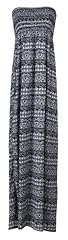 Fast Fashion Damen Viskose Jersey Streifen Aztec Tribal Zick Zack drucken Boobtube Gummizug Maxi Kleid (40/42, Aztec Black/White)