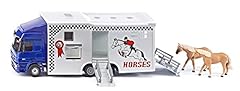 SIKU 1942, Pferdetransporter, 1:50, Metall/Kunststoff, Blau/Grau, Inkl. 2 Spielzeug-Pferden, Abnehmbares Dach