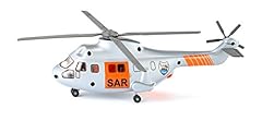 SIKU 2527, SAR Transporthubschrauber, 1:50, Metall/Kunststoff, Silber, Inkl. Trage und zu rettende Spielzeugfigur, Automatisch einziehbare Seilwinde