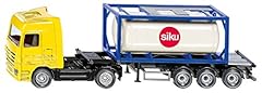 SIKU 1795, LKW mit Tankcontainer, 1:87, Metall/Kunststoff, Gelb/Blau, Abkoppelbarer Auflieger