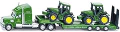 SIKU 1837, Tieflader mit 2 John Deere Traktoren, 1:87, Metall/Kunststoff, Grün, Klappbare Heckklappe