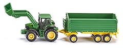 SIKU 1843, John Deere Traktor mit Frontlader und Anhänger, 1:87, Metall/Kunststoff, Grün, Kippbarer Anhänger