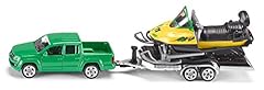SIKU 2548, Pick-Up mit Anhänger und Snowmobil, 1:55, Metall/Kunststoff, Grün/Gelb, Kippbarer Anhänger