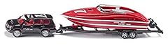 SIKU 2543, PKW mit Motorboot, 1:55, Metall/Kunststoff, Schwarz/Rot, Schwimmfähiges Spielzeugboot
