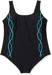 Ulla Popken Große Größen Damen Einteiler Badeanzug, Piping Schwarz (Schwarz 10), 42