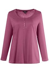 Ulla Popken Damen große Größen bis 64, Oberteil, Langarmshirt, Shirt, Basic, Langarm & Rundhals, Reine Baumwolle purpurpink 54/56 700603 85-54+