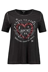Ulla Popken Damen große Größen bis 64, T-Shirt, glitzerndes Pailletten-Herz, WE Rock Motiv, Rundhalsausschnitt, Halbarm, 724319
