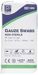 Premier 1650 Baumwolle Mullkompressen 8-lagig 5 cm x 5 cm weiß Papier Packungen (100 Stück)