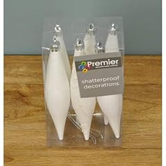 6x Christbaum Schmuck Weiße Zapfen / Tropfen