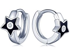 Unendlich U Modisch Stern Damen Creolen 925 Sterling Silber Schwarz Epoxy Ohrringe Ohrschmuck, Silber