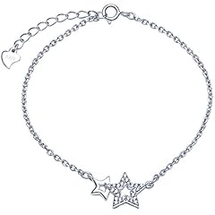 Unendlich U Fashion Doppel Sterne Damen Armband 925 Sterling Silber Zirkonia Armkette Verstellbar Charm Armkettchen Armreif, Silber