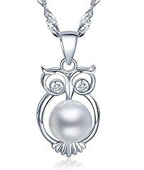 Unendlich U Unique 925 Sterling Silber Damen Halskette Eule 8mm Perle Anhänger Perlenkette