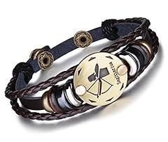 Unendlich U Punk Modisch 12 Sternbilder Sternzeichen Herren Damen Charm Armband Geflochten Leder Legierung Multilayer Braun Armreifen, Widder(Aries)