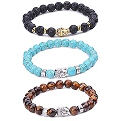Unendlich U Unisex Buddha Armband, Zen-Buddhismus Legierung Armreif, EnergieStein Kugeln Perlen Gebet Mala Stretch Energiearmband, Braun/Blau/Schwarz(Lavastein)