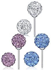 Unendlich U 925 Sterling Silber 6PCS Weiß/Lila/Blau Shamballa Kristallkugeln Ohrstecker Gestüt Stecker Ohrringe Set Ohrschmuck für Damen Mädchen, 3 Paare