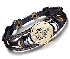 Unendlich U Punk Modisch 12 Sternbilder Sternzeichen Herren Damen Charm Armband Geflochten Leder Legierung Multilayer Braun Armreifen, Löwe(Leo)