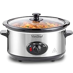 VonShef Schongarer Slow Cooker 3,5L mit Glasdeckel - Edelstahl