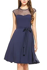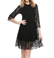 Zeagoo Damen Vintage Retro Spitzen Kleid 3/4 Arm Cocktail Abendkleid Knielang mit Schleife