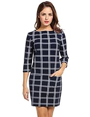 Zeagoo Damen Tartan Kleid Rundhals 3/4 Ärmeln Karo-Kleid Elegant Kariertes Kleid Gerades Kleid Casual Kleid Etuikleid Businesskleid Knielang mit Seitentaschen