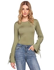 Zeagoo Damen Oberteil Shirt Langarmshirt Herbst Casual Bluse Rundhals Tops mit Trompeten-Ärmeln Schwarz Grün Blau Rot