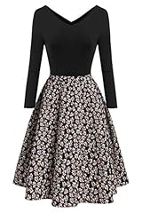 Zeagoo Damen Vintage 50er Jahre Kleid Rockabilly Cocktail Abendkleid Festliches Kleid 3/4 Ärmel V Ausschnitt A Linie