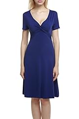 Zeagoo Damen V-Ausschnitt Wickelkleid Shirtkleid Skaterkleid Kurzarm Kleid A-Linie Knielang