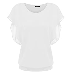 Zeagoo Damen Sommer Casual Loose Fit Kurzarm Fledermaus Batwing T-Shirt Shirt Chiffon Top Bluse, EU 40(Herstellergröße:L), Weiß