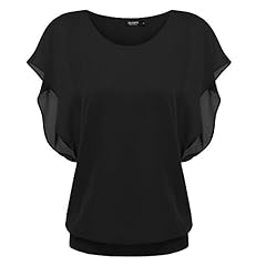 Zeagoo Damen Sommer Casual Loose Fit Kurzarm Fledermaus Batwing T-Shirt Shirt Chiffon Top Bluse, EU 38(Herstellergröße:M), Schwarz