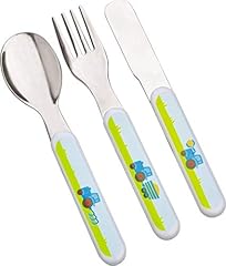 HABA 302820 - Besteck Traktor, Kinderbesteck aus Edelstahl mit Traktormotiven, Set aus Gabel, Messer und Löffel, spülmaschinengeeignet