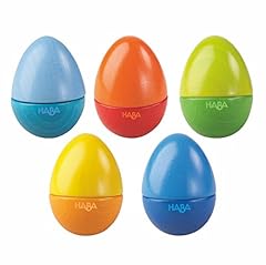 Haba 7733 - Musikeier, 5 farbenfrohe Rasseleier, aus Holz, zur Förderung der musikalischen Entwicklung von Babys und Kleinkindern ab 2 Jahren