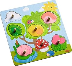 HABA 302528 - Greifpuzzle Tierversteck | Holzspielzeug ab 12 Monaten | 7-teiliges Puzzle aus Holz mit buntem Gartenmotiv | Mit großen Knöpfen zum Greifen