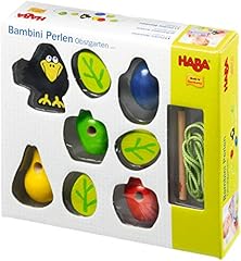 HABA 3397 - Bambini Perlen Obstgarten | Süßes Fädelspiel ab 3 Jahren | Mit großen Holzperlen in schönen Farben und Formen | Prima Geschenk für alle Fans des beliebten Spieleklassikers Obstgarten