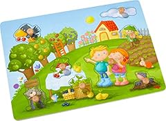 HABA 304430 - Greifpuzzle Obstgarten, 8-teiliges Holzpuzzle mit Naturmotiven und großen, griffigen Holzknöpfen, Holzspielzeug ab 12 Monaten
