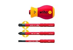 Wiha Schraubendreher mit Bithalter Set electric slimVario® (41230), 4 tlg., Griff mit Bits VDE, Schraubendreher kurz für Elektriker, Schlitz/ Phillips/ Pozidriv/ PlusMinus (SL/PZ)
