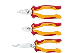 Wiha Zangen Set Professional electric VDE (26852), 3 teiliger isolierter Zangensatz, Kombizange + Flach Rundzange + Seitenschneider, Zangen für Elektriker