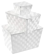 Wenko 87620500 Flechtkörbe Adria mit Deckel 3-teilig Set, Polypropylen, weiß.