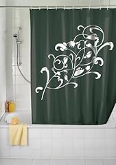 WENKO 19223100 Duschvorhang Ornamento Bianco - waschbar, mit 12 Duschvorhangringen, Kunststoff - Polyester, Schwarz
