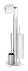 WENKO Stand WC-Garnitur Rivalta, mit integriertem Toilettenpapierhalter und WC-Bürstenhalter, Silber matt, Maße: 18 x 19 x 69 cm