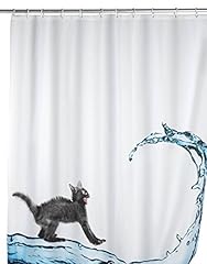 WENKO Anti-Schimmel Duschvorhang Cat, Duschvorhang mit Antischimmel Effekt fürs Badezimmer, inkl. Ringen zur Befestigung an der Duschstange, waschbar, 100% Polyester, 180 x 200 cm, mehrfarbig