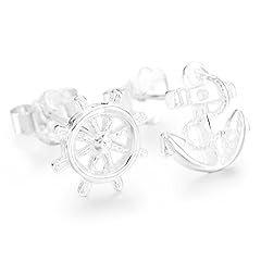 MunkiMix 925 Sterling Silber Gestüt Stecker Ohrringe Ohrstecker Ohrhänger Anker Segeln Nautisch Ruder Rad Einzigartig Polished