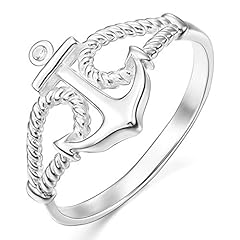MunkiMix 925 Sterling Silber 13mm Ring CZ Zirkon Zirkonia Silber Ton Anker Segeln Nautisch Seil Damen