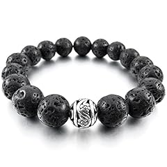 MunkiMix 12mm Metalllegierung Legierung Energiearmband Energie Armband Link Handgelenk Lava Schwarz Silber Ton Buddha Gebet Mala Kugel Perle Perlen Elastisch Herren,Damen