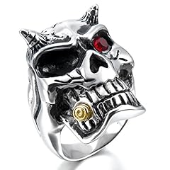 MunkiMix Groß Edelstahl Ring CZ Zirkon Zirkonia Schwarz Silber Golden Zwei Ton Rot Teufel Totenkopf Schädel Herren