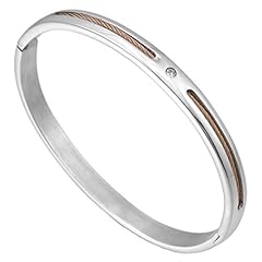 MunkiMix Edelstahl Armband Armreifen Manschette CZ Zirkon Zirkonia Silber Golden Zwei Ton Drahtseil Lieben Valentine Paar Paare His & Hers Set Damen